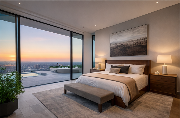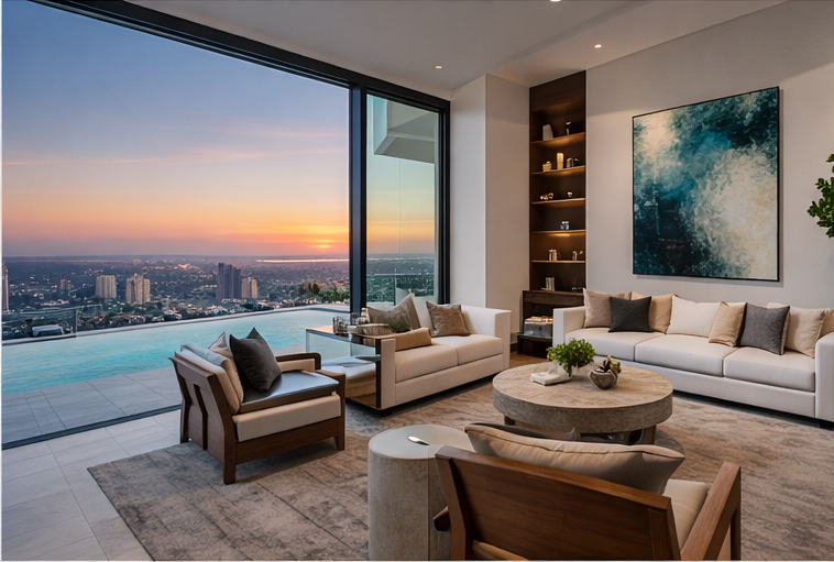 • Terraza Privada: Un oasis urbano con alberca infinita privada, zona de lounge y fire pit, diseñado para el entretenimiento al más alto nivel.